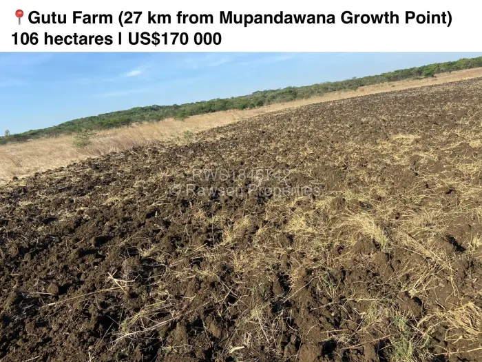 Available on sale is a 105 hectare farm in a good location just 27 km from Gutu Mupandawana and only 7km from Harare - Chiredzi highway. The farm has mixed soil types and is very arable. The farm has all paperwork including title deeds plus certificate of no present interest. The farm has a lot of potential and is in a very good area. The farm is ideal for cattle ranching or crop production.