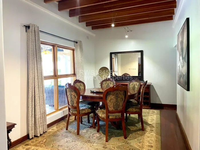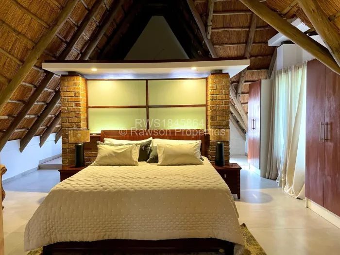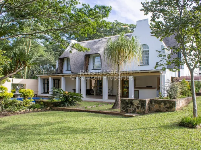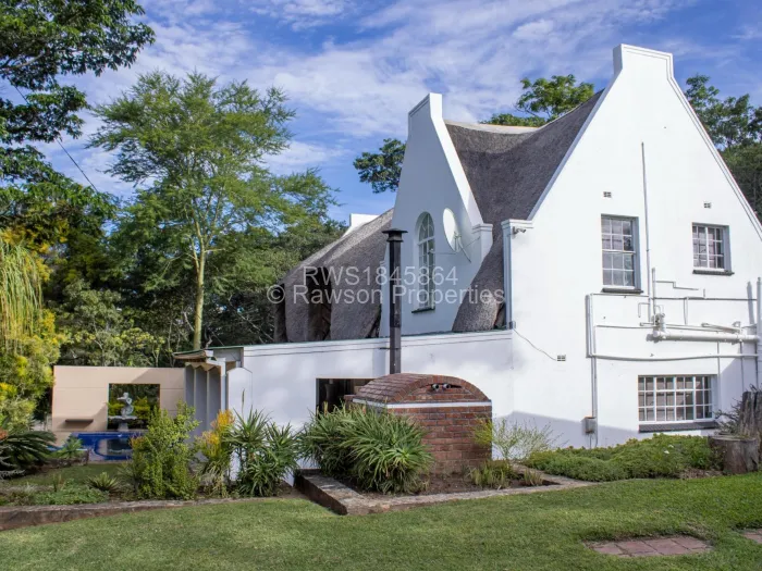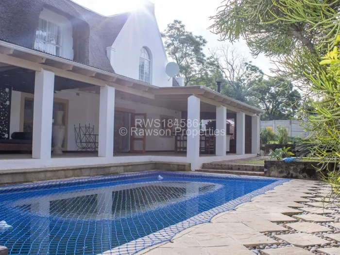 Two beds sharing a common bathroom, an expansive fitted kitchen with a breakfast nook and scullery, dining room and lounge, a verandah with a bar and pizza oven overlooking a swimming pool with an entertainment area. It has a paved drive way and a seasonal borehole double carports 2x 5000litre water tanks