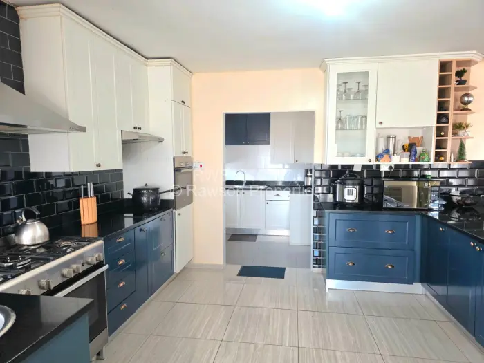 Available is a spacious 4 bedroom house. Master bedroom with ensuite and walk in closet. Open plan lounge, kitchen and dining. Fitted kitchen, Scullery and pantry. Double lockup garage, 5000ltr water and a well. Walled and gated. Electric gate. Mature garden. A must see.