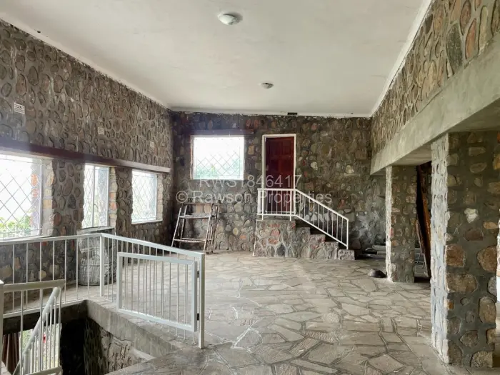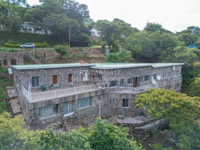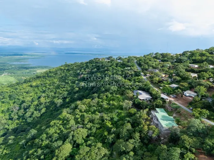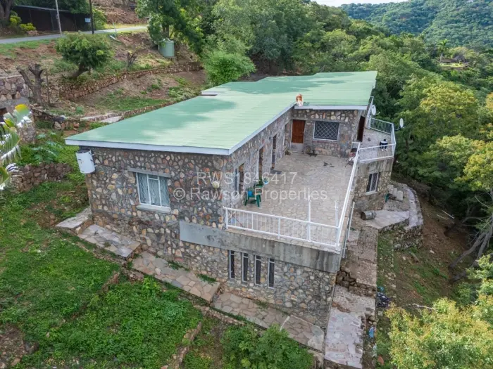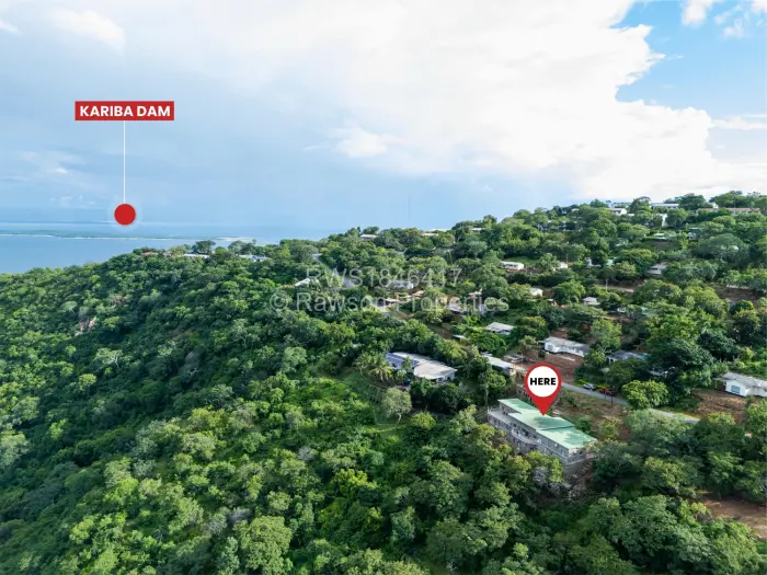 Luxurious Double Storey House which comes with 6 en-suite bedrooms (4 at ground level and two below), a kitchen with pantry, two lounges one upstairs and the other one downstairs. There is a spacious dining room, a bar, conference room and guest toilets. The property also has an incomplete 2-bedroom cottage built to roof level. The whole building of the main House is built of masonry, and this makes the building self-insulating, remaining very cool throughout the year, despite the Kariba heat. It is a double Storey building, with a balcony overlooking the valley where various wildlife can be observed as well as part of Lake Kariba and Kariba Airport.